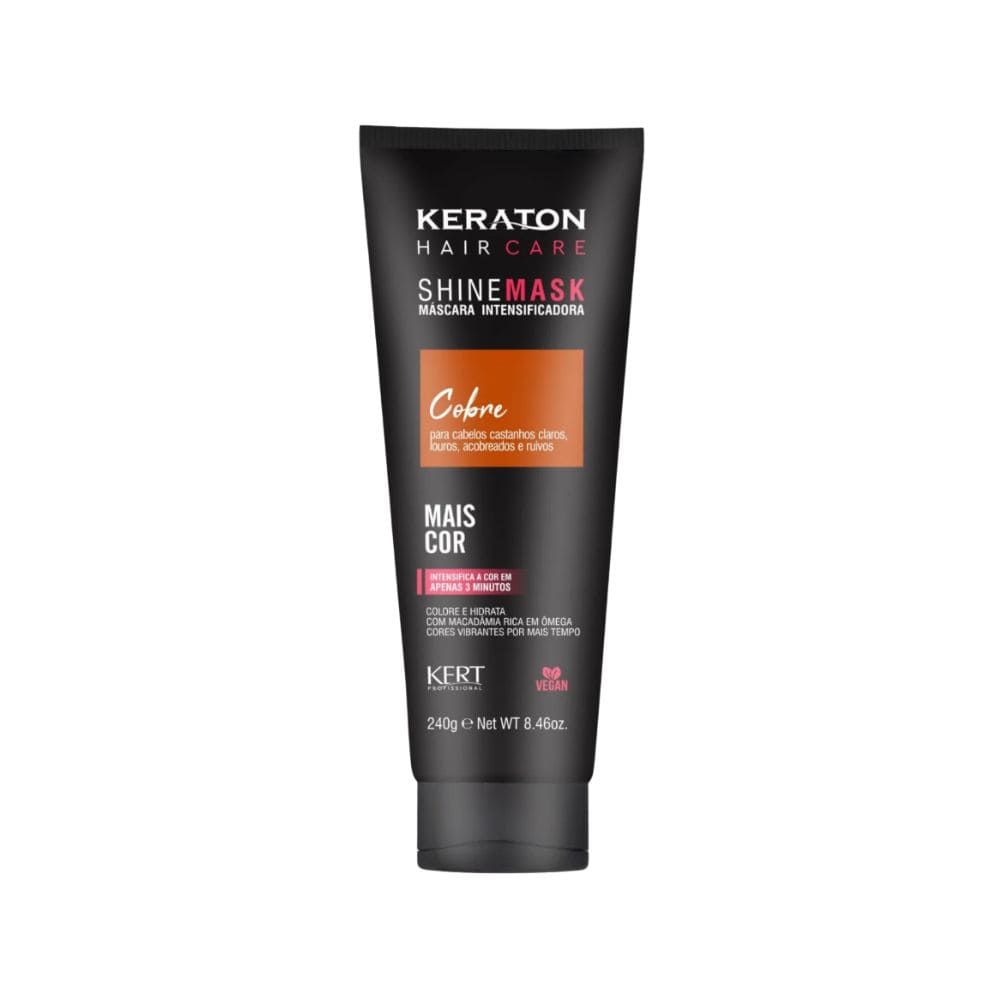 Keraton Shine Mask Cobre, comercializada pela Loja La Rosée Cosméticos, é uma máscara hidratante matizadora, intensificadora da cor, indicada para ser aplicada entre uma coloração e outra ou sempre que seus cabelos perderem cor e brilho.
